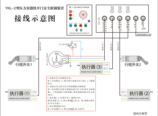 2.執(zhí)行器不防雨,220V供電設備在高溫潮濕環(huán)境中、露天下雨時,如遮蓋不及時,工作狀態(tài)可想而知······設備損壞、漏電、跳閘、觸電。對快開門壓力容器正常運行帶來很大的安全隱患。為此我公司技術人員投入近兩年時間,進行全面徹底的技術創(chuàng)新,終于成功研發(fā)了YKL-2型壓力容器快開門安全聯(lián)鎖裝置。