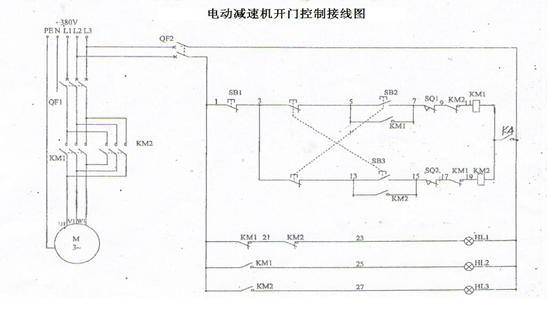 將主控箱輸出的常開干接點K4串入電動減速機電路,如下圖: